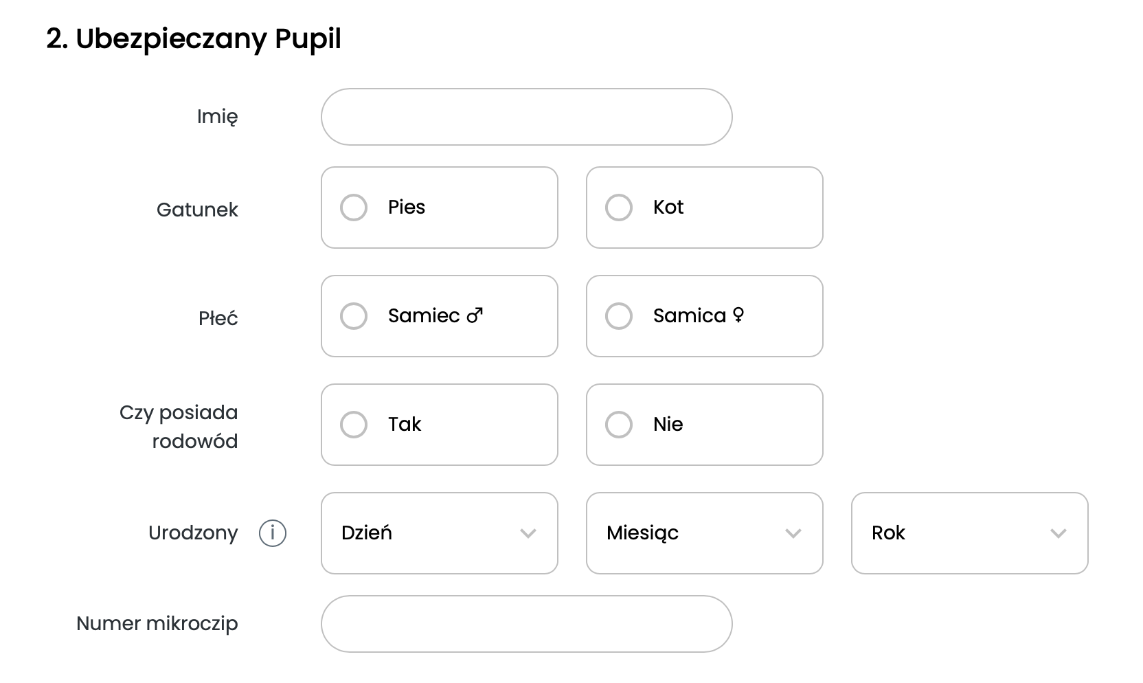 W celu ubezpieczenia potrzebne jest przejście przez ankietę medyczną aby dowiedzieć się czy zwierzak może zostać ubezpieczony, jeśli wszystko jest w porządku to w dalszym kroku możemy wybrać pakiet ubezpieczenia.